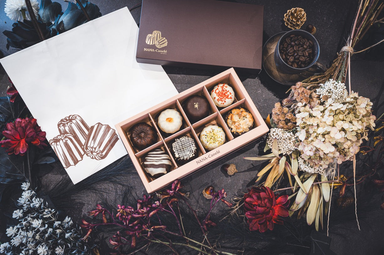【NANA-Canelé贈答用プレミアム8個入りDセット】(クラシック、ミルクショコラ、寿太郎マーマレード※、ロイヤルミルクティー、ビターショコラ、ピスタチオ、いちご、アーモンド)